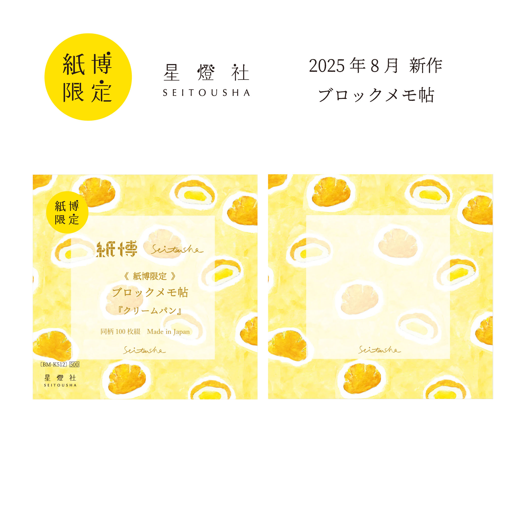 紙博限定 ブロックメモ帖『クリームパン』 / 同柄100枚綴り